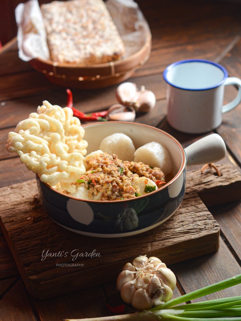 - Masukkan oncom, aduk-aduk sampai oncom matang.